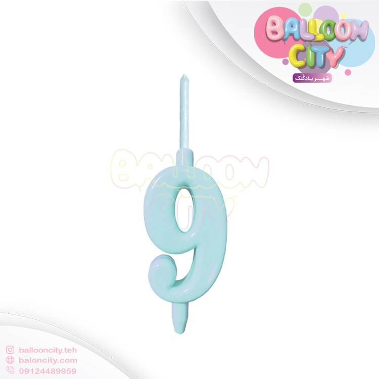 شمع اعداد تولدی رنگ ابی پاستلی شماره ۹